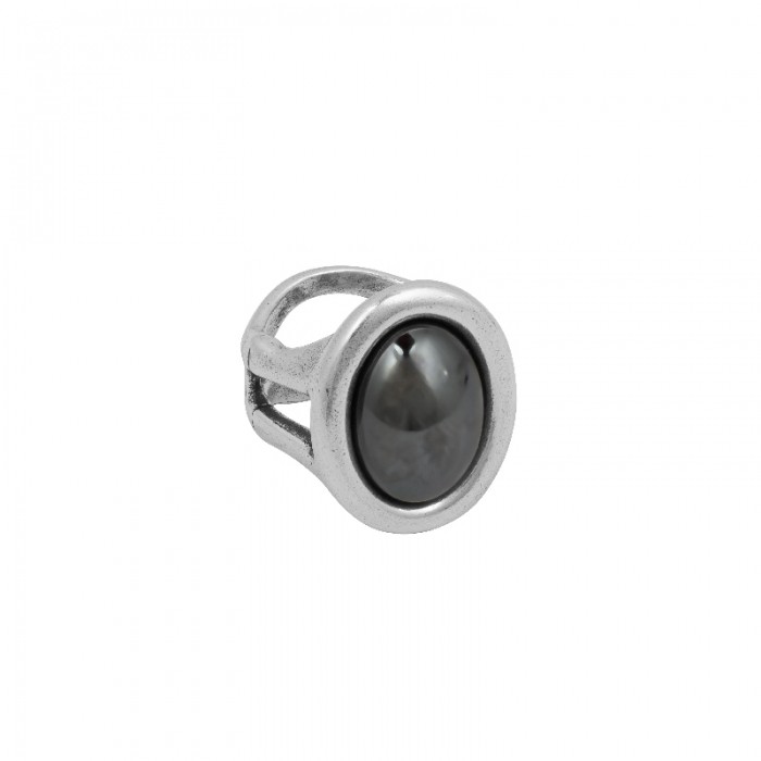 Anillo Ventura Abierto maxi bañado en plata con piedra color hematite. Talla 9 a la 12/14