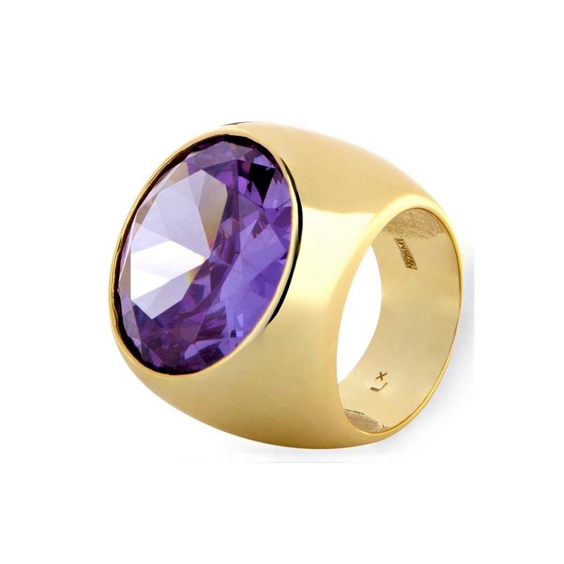 Sortija de plata de ley 925 chapada en oro amarillo con piedra Circonita Morganita (color amatista) embutida.