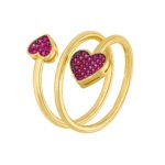 Anillo muelle con corazones de circonitas rubí. Plata de ley rodiada bañada en oro de 18k. Colección Rock You. - Material: Plata de Ley 925