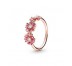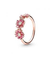 Anillo Pandora Trío de Margaritas Rosas en Pandora Rose una aleación única de metales con un recubrimiento en oro de segunda ley de 14k adornado con circonitas cúbicas transparentes y esmalte rosa y transparente.