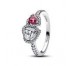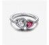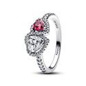 Anillo Pandora Corazones Halo Brillante para mujer de la colección San Valentín 2025 fabricado en plata de primera ley compuesto por circonitas blancas y 2 en forma de corazones en su parte superior una de ellas blanca y otra en color rosa.