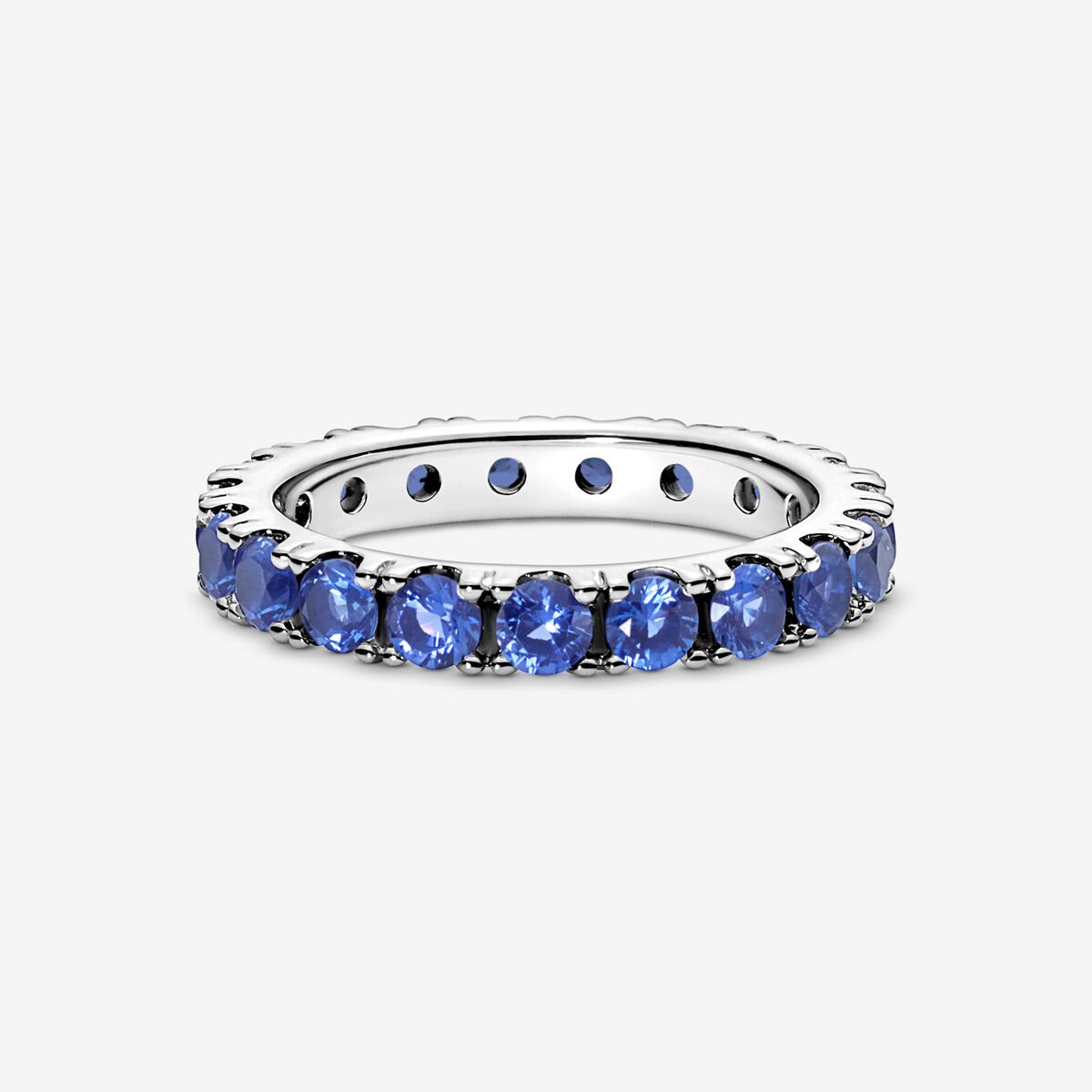 Anillo Eternity Brillante. Acabado a mano en plata de primera ley, este anillo Eternity se ha embellecido con brillantes cristales de color azul. Este diseño destacará llevándolo tanto solo como combinado con otros anillos.