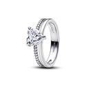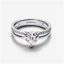 Anillo Pandora Corazón Doble Banda para mujer de la colección San Valentín 2025 fabricado en plata de primera ley compuesto por un doble aro, uno de ellos liso y otro cmpuesto por circonitas blancas. En su parte central cuenta con una circonita blanca en forma de corazón.