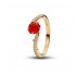 Anillo Pandora Rosa Encantada de La Bella y La Bestia para mujer de la colección Disney de Pandora fabricado en aleación de metales bañados en oro amarillo de 14kt compuesto por circonitsa cúbicas transparentes y cristal de Murano rojo en forma de Rosa.