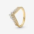 Anillo Tiara Deseo de Pandora Timeless. Diseñado para una princesa de hoy en día e inspirado en tocados reales de la historia, este anillo con un recubrimiento electrolítico de oro de segunda ley de 14k. Engastado con hileras de circonitas cúbicas brillantes en monturas clásica