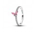 Anillo Pandora Mariposa Rosa Brillante para mujer de la colección Navidad 2025 fabricado en plata de primera ley compuesto por criconitas cúbicas transparentes con una pieza en forma de mariposa compuesta por circonitas rosas.