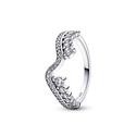 Anillo Pandora Ola Asimétrica Brillante para mujer fabricado en plata de primera ley en forma ondulada asimétrica con circonitas brillantes.