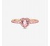 Anillo Corazón Brillante Elevado Rosa, inspirado en nuestra clásica colección Pandora Timeless. Acabado a mano con una aleación única de metales con un recubrimiento electrolítico de oro rosa de segunda ley de 14K, esta joya presenta una gema central más elevada con forma de corazón de color rosa. Las circonitas cúbicas transparentes crean un halo y decoran la mitad del eje de la alianza, que además presenta el logotipo de Pandora en su interior.