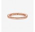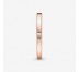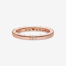 anillo acabado a mano con un con un recubrimiento electrolítico en oro rosa de segunda ley de 14k , presenta un perfil cuadrado con un borde exterior pulido, el logotipo de Pandora en los dos laterales y corazones recortados en el interior. Unas líneas estriadas en dos posiciones crean un marco cuadrado embellecido con circonitas cúbicas transparentes.