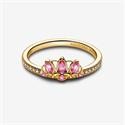 Anillo Pandora Princesa Rapunzel para mujer de la colección Disney fabricado en aleación de metales bañados en oro amarillo de 14kt compuesto por circonitas blancas y cristales rosas.