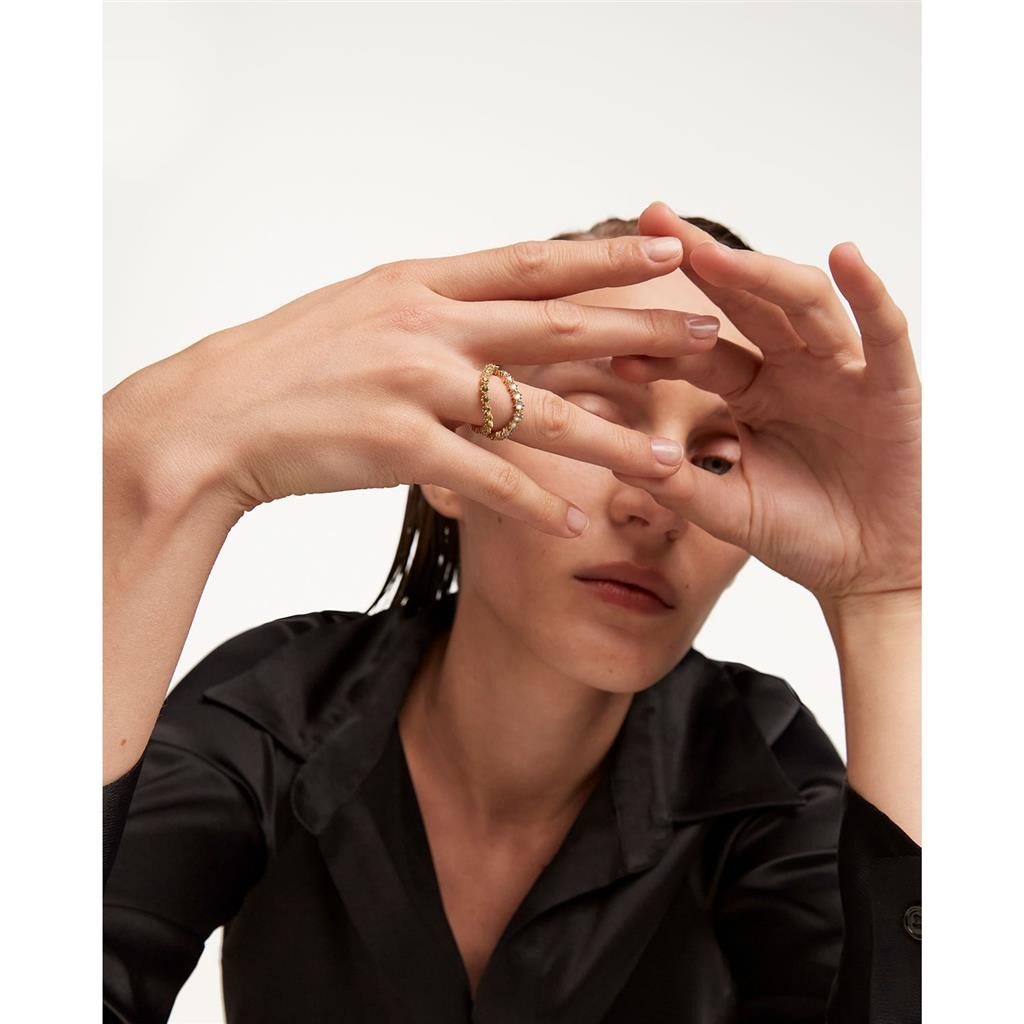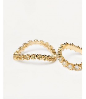 Fabricadas en Plata de Ley 925 con un baño de oro de 18K, destacan las piedras engarzadas en un original engaste de 8 garras.