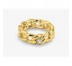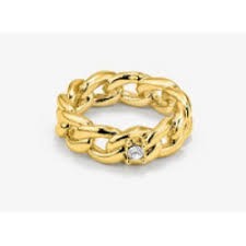 Anillo Radiant Gaga Chain. Fabricado en acero 316L hipoalérgico IP dorado acabado brillante. Montura con forma de eslabones barbados de 5.5mm de ancho decorado con circonita. Talla 14