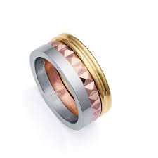 Anillo Viceroy para mujer 14083A01219 triple de acero tricolor con distintos acabados.