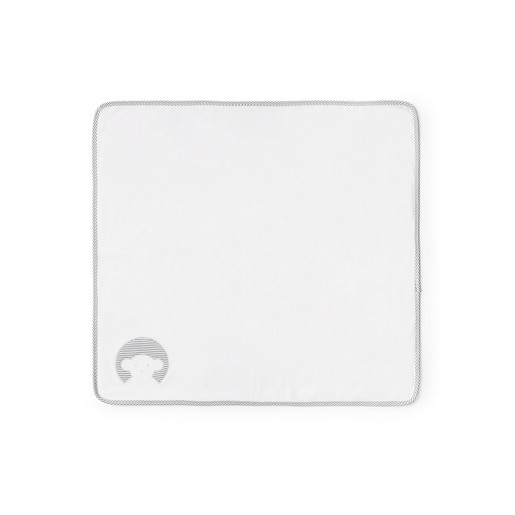 Arrullo Baby TOUS en suave algodón liso con terminaciones rayadas. Silueta de oso rayado circular en el lateral. Ideal para envolver y mantener el calor del bebé en sus primeros meses de vida.COMPOSICIÓN: 80%Algodón 20%Poliéster. Color blanco. MED.: 75x75 cm. Certificado OEKO/TEX*. Fabricado en la UE.