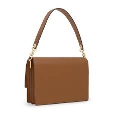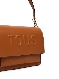 bandolera mediana Tous 2002104944 Audree camel Brenda orientada para mujer, es de poliuretano en color camel. Incorpora una solapa y cierre con dos botones magnéticos. Cuenta con dos compartimentos separados por uno con cremallera y un bolsillo abierto en la parte delantera. Asa de hombro fija y asa bandolera ajustable y desmontable. Medidas (alto x ancho x fondo): 19 x 25 x 11,5 cm.