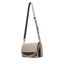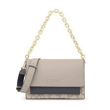 Bolso bandolera mediano Audree Kaos Icon de poliuretano y lona con estampado Kaos en color topo. Bolso con dos compartimentos separados por un bolsillo con cierre de cremallera y un bolsillo abierto en la parte delantera. Cierre de solapa con dos botones magnéticos. Asa de hombro fija y asa bandolera ajustable y extraíble. Medidas (alto x ancho x fondo): 16,5 x 25 x 11 cm.