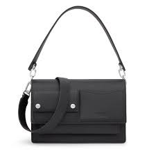Bolso bandolera mediano Audree TOUS Pockets de poliuretano en color negro. Incorpora una solapa y cierre con dos botones magnéticos. Cuenta con dos compartimentos separados por uno con cremallera y un bolsillo abierto en la parte delantera. Asa de hombro fija y asa bandolera ajustable y desmontable. Medidas (alto x ancho x fondo): 19 x 25 x 12 cm