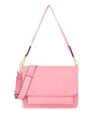 Bolso bandolera mediano Audree TOUS La Rue de piel sintética con vivo de piel vacuna en color rosa. Cierre de solapa con dos botones magnéticos. Bolso con un bolsillo abierto en la parte delantera y dos compartimentos separados por un bolsillo con cierre de cremallera en el interior. Asa de hombro extraíble y asa bandolera ajustable y extraíble. Medidas (alto x ancho x fondo): 19 x 26 x 12 cm.