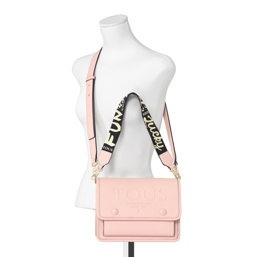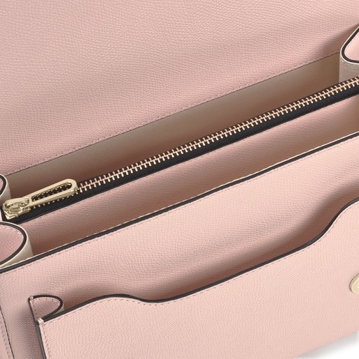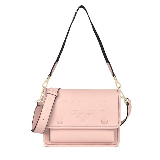 Bolso bandolera mediano TOUS de la colección Audree T POP de poliuretano con acabado piel en color rosa. Cierre con dos botones a presión. El bolso cuenta con asa de hombro y asa larga, ambas ajustables y desmontables. Dentro hay 3 compartimentos y un bolsillo interior con cremallera, con otro bolsillo plano en el exterior. Medidas: 11 x 25 x 20 cm