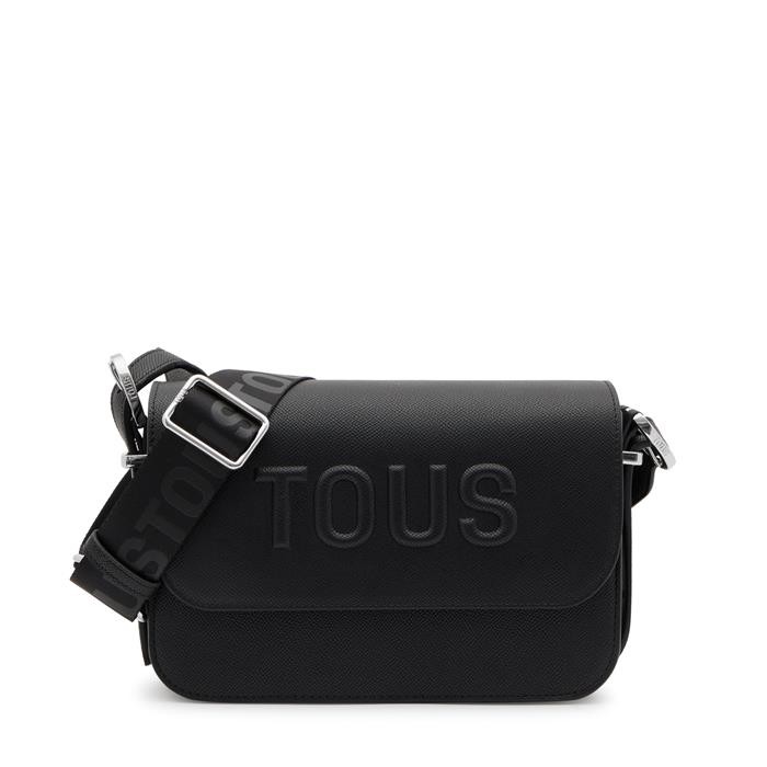 Bolso Bandolera TOUS para mujer de la colección Brenda fabricado en poliuretano en color negro tamaño mediano. Este atractivo bolso cuenta con cierre de solapa mediante botón magnético y posee un bolsillo interior abierto. Su asa de bandolera es ajustable.