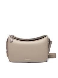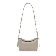 Bolso bandolera mediano TOUS City de poliuretano en color topo. Cierre de imán. Bolsillo exterior cremallera y bolsillo interior cremallera. Asa bandolera ajustable. Medidas (alto x ancho x fondo): 16 x 26 x 12 cm.