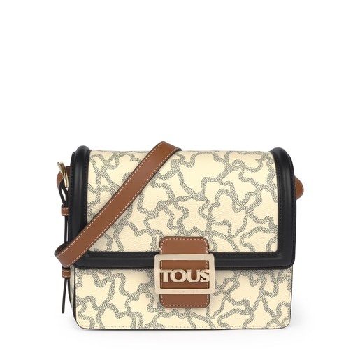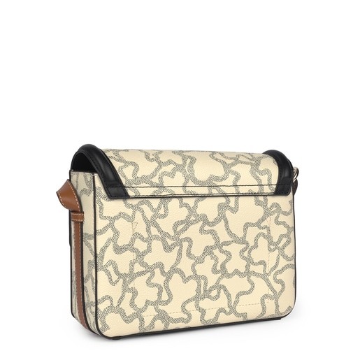 Bolso bandolera mediana TOUS Kaos Icon de lona hidrófuga combinado con vinilo efecto piel con estampado kaos. Color multi - beige. Medidas: 25 x 17 x 9 cm.