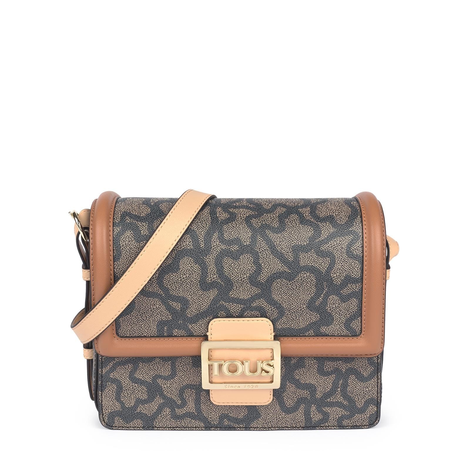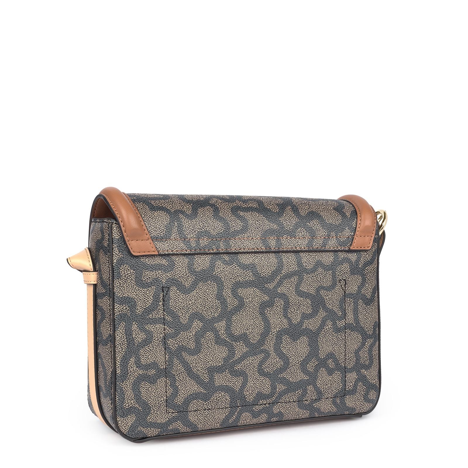 Bolso bandolera mediana TOUS Kaos Icon Multi Negro de lona hidrófuga combinado con vinilo efecto piel con estampado kaos. Medidas: 25 x 17 x 9 cm.