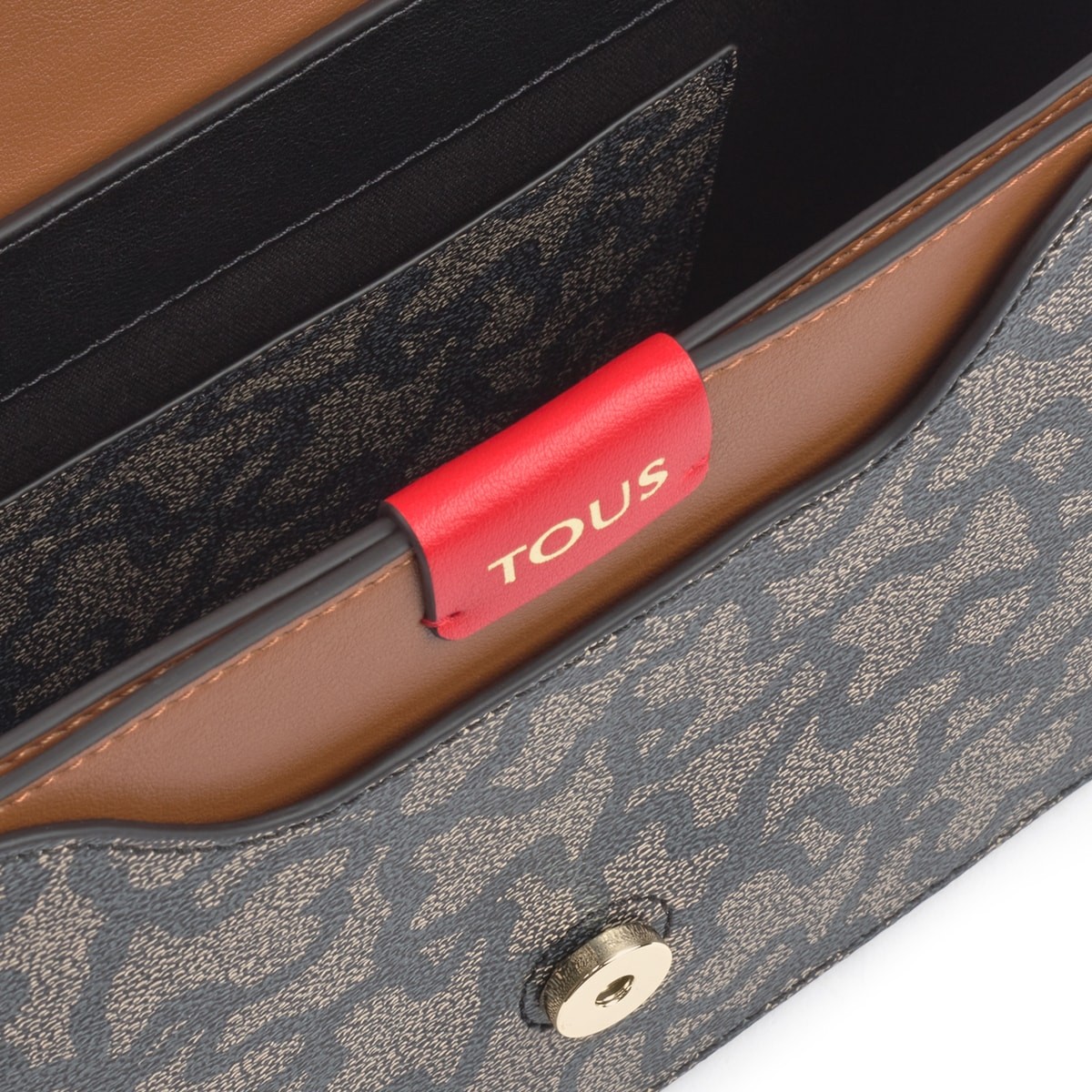Bolso bandolera mediana TOUS Kaos Icon de lona hidrófuga combinado con vinilo efecto piel con estampado kaos. Color multi - rojo. Medidas: 25 x 17 x 9 cm.