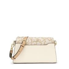 Bolso bandolera mediano Kaos Icon de poliuretano y lona con estampado Kaos en color marfil. Cierre de cremallera. En el interior contiene dos compartimentos. Bolsillo interior abierto y bolsillo exterior abierto. Asa bandolera ajustable y extraíble. Medidas (alto x ancho x fondo): 16 x 26 x 9,5 cm.