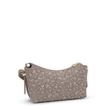 Bolso bandolera mediano Kaos Mini Lines de lona con detalles de poliuretano en color topo. Cierre de cremallera. Bolsillo interior con cremallera. Asa bandolera ajustable. Medidas (alto x ancho x fondo): 14,5 x 27 x 10,5 cm.