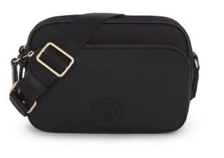 Bolso bandolera Tous colección New Doromy de nylon en color negro. Cierre con cremallera. Apliques contrastados. Asa de bandolera ajustable. Un bolsillo interior plano. Un bolsillo exterior con cremallera.
