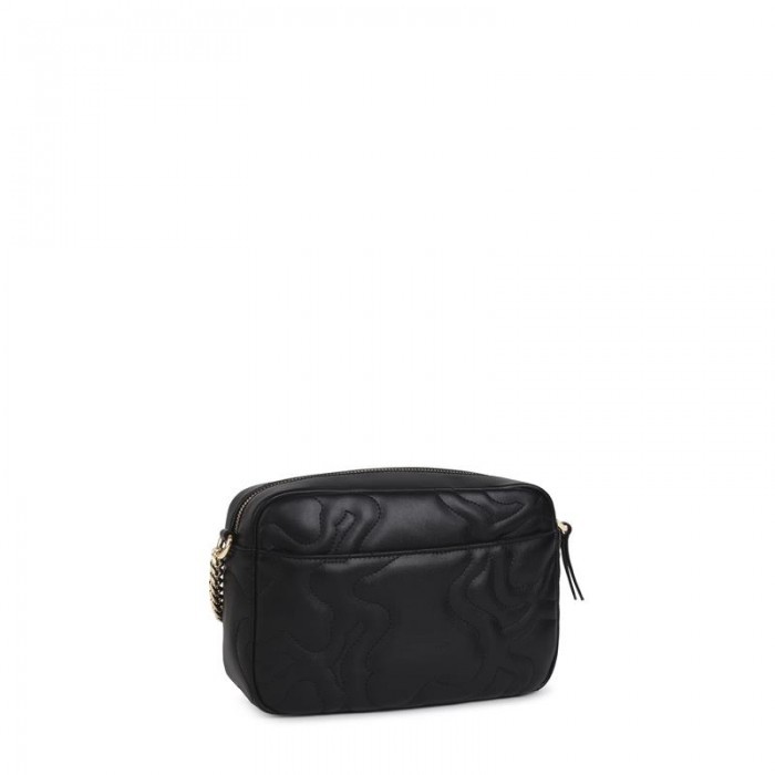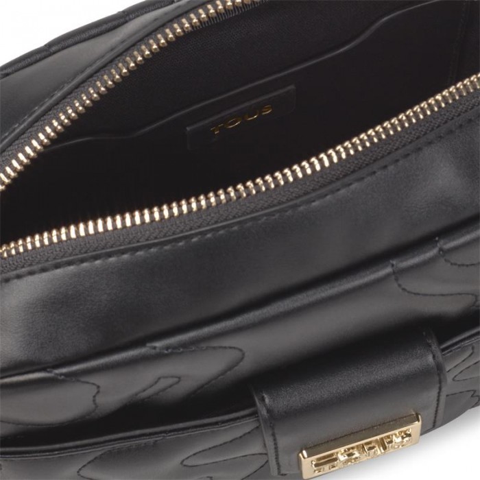 Bolso bandolera pequeña TOUS de la colección Kaos Dream de poliuretano acolchado en forma de osos con acabado efecto piel en color negro. Correa larga de bandolera ajustable. Cierre de cremallera. Un bolsillo interior y dos bolsillos exteriores planos. Medidas: 8 x 25 x 16 cm.