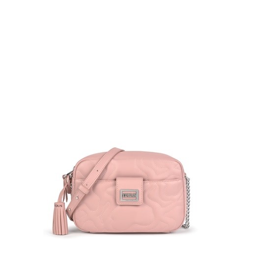 Bolso bandolera pequeña TOUS de la colección Kaos Dream de poliuretano acolchado en forma de osos con acabado efecto piel en color rosa. Correa larga de bandolera ajustable. Cierre de cremallera. Un bolsillo interior y dos bolsillos exteriores planos. Medidas: 8 x 25 x 16 cm.