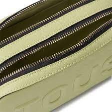 Bolso bandolera reporter TOUS La Rue New de piel sintética en color verde. Bandolera con dos compartimentos con cierre de cremallera y uno de ellos con bolsillo interior abierto. Asa bandolera ajustable. Medidas (alto x ancho x fondo): 13 x 20,5 x 7 cm.