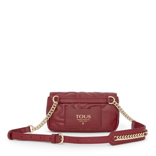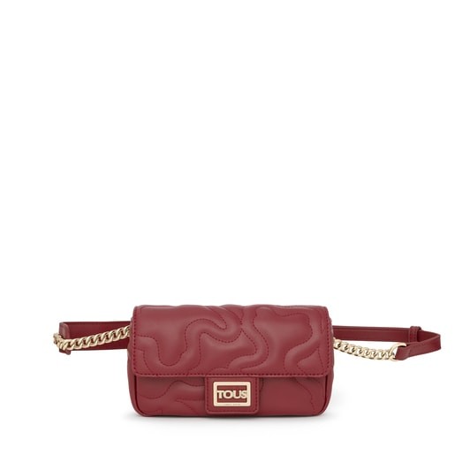 Bolso riñonera TOUS de la colección Kaos Dream de poliuretano acolchado en forma de osos con acabado efecto piel en color burdeos. Asa larga tipo riñonera/bandolera ajustable. Cierre con botón magnético. Un bolsillo exterior plano. Medidas: 6 x 21 x 12 cm.