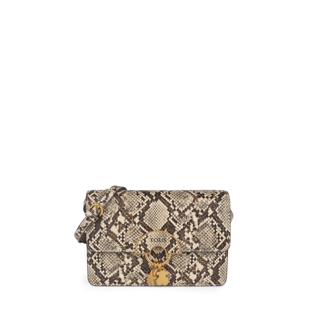 BANDOLERA TOUS.S.HOLD.WILD.BEIGE.095891357. Colección Hold Wild de vinilo efecto piel en color beige. Cierre con botón magnético. Apliques personalizados. Asa de bandolera ajustable y extraíble y pasador para riñonera. Bolsillo exterior con cremallera. Medidas: 14x20x6 cm.