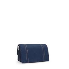 Bolso bandolera pequeño Audree Denim de Poliuretano y algodón reciclado en color azul. Bolso con dos compartimentos separados y un bolsillo abierto en la parte delantera. Cierre de solapa con dos botones magnéticos. Asa de hombro fija y asa bandolera ajustable y extraíble. Medidas (alto x ancho x fondo): 15 x 19,6 x 10 cm