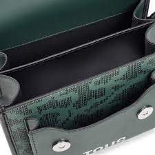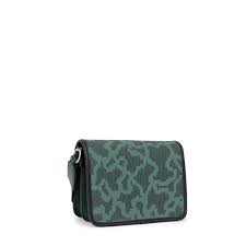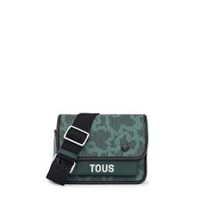 Bolso bandolera pequeño Audree TOUS Kaos Pix de lona con estampado en color verde y negro. También incorpora detalles de piel sintética y vivo de piel vacuna. Bolso con dos compartimentos separados y un bolsillo abierto en la parte delantera. Cierre de solapa con dos botones magnéticos. Asa bandolera ajustable. Medidas (alto x ancho x fondo): 15 x 19,5 x 12 cm.