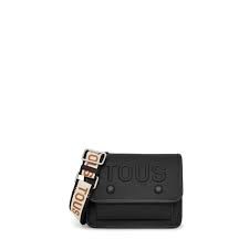 Bolso bandolera pequeño Audree TOUS La Rue de piel sintética con vivo de piel vacuna en color negro. Cierre de solapa con dos botones magnéticos. Bolso con un bolsillo abierto en la parte delantera y dos compartimentos abiertos en el interior. Asa bandolera ajustable. Medidas (alto x ancho x fondo): 15 x 20 x 12 cm.