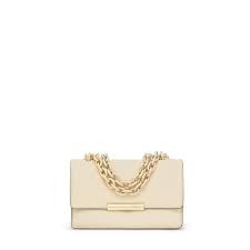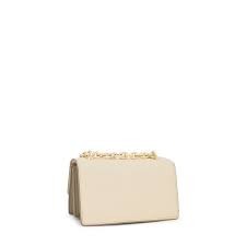 Bolso bandolera pequeño Audree Leather de piel ovina con certificación LWG en color beige. Cierre de solapa con botón magnético. Bolsillo interior abierto. Dos compartimentos abiertos en el interior. Asa bandolera ajustable a asa de hombro. Medidas (alto x ancho x fondo): 12 x 20 x 10 cm.