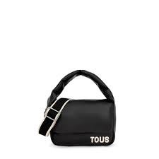 Bolso bandolera pequeño TOUS Carol de piel sintética en color negro. Cierre con solapa y dos botones magnéticos. Asa fija de hombro o mano y asa bandolera ajustable y extraíble. Medidas (alto x ancho x fondo): 15 x 20 x 10 cm.