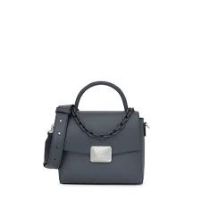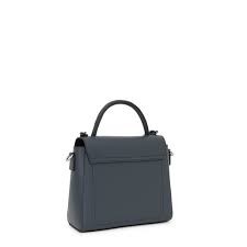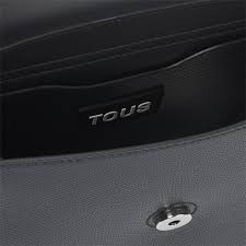 Bolso bandolera pequeño TOUS Lucia de lona con detalles en poliuretano en color gris oscuro. Cierre de botón magnético. Bolsillo interior abierto. Asa fija de mano y asa de bandolera ajustable y extraíble. Medidas (alto x ancho x fondo): 17 x 20 x 6 cm.