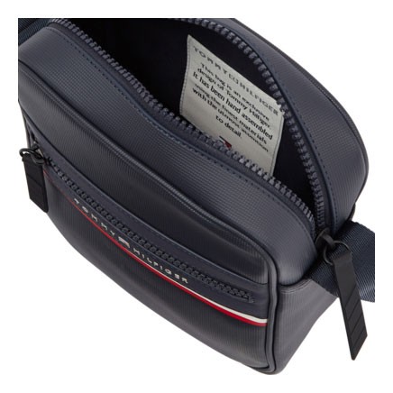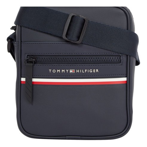 Bandolera de ecopiel Tommy Hilfiger. Bandera corporativa frontal y logo TH. Cierre con cremallera y tira ajustable