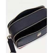 bolso bandolera con acabado granulado presenta un acabado distintivo y una insignia brillante del monograma de Tommy Hilfiger.