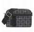 Bolso bandolera mediana TOUS colección Logogram de vinilo efecto piel estampado en color negro. Cierre con cremallera. Apliques personalizados en tono dorado pálido. Asa de bandolera ajustable. Bolsillo interior plano. Bolsillo exterior con cierre magnético. Medidas: 17x24x10 cm.