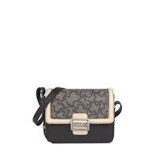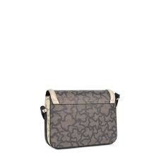 Bolsa bandolera mediana TOUS Kaos Icon de lona hidrófuga combinado con vinilo efecto piel con estampado kaos en negro y blanco. Cierre con botón magnetico. Asa larga de bandolera ajustable. Un bolsillo plano interior. Medidas: 25 x 17 x 9 cm.