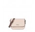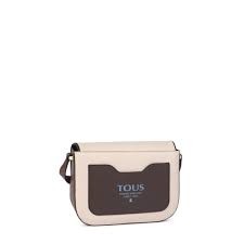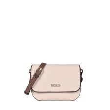 Bolso bandolera TOUS de la colección Essential de vinilo efecto safiano combinado con vinilo efecto piel en color beige y marrón. Cierre con botón magnético. Asa de bandolera ajustable. El bolso cuenta con 1 bolsillo exterior y otro plano en el interior. Medidas: 22,5 x 17 x 7 cm.
