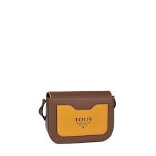Bolsa bandolera Tous de la colección Essential de vinilo efecto safiano combinado con vinilo efecto piel en color marrón y mostaza. Cierre con botón magnetico. Asa de bandolera ajustable. Bolsa cuenta con 1 bolsillo exterior y otro plano interior. Medidas: 22,5x 17 x 7cm.