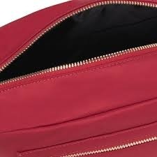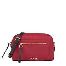 Bolsa bandolera Tous de la colección Shelby de vinilo con efecto piel combinado con nylon reciclado en color rojo. Cierre con cremallera. Asa de bandolera ajustable. Bolsa cuenta con 1 bolsillo exterior con cremallera y 1 bolsillo plano interior. Medidas: 35 x 26 x 7cm.