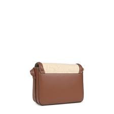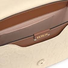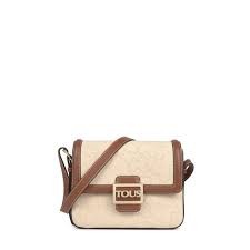 Bolso bandolera mediana TOUS Icon de lienzo de algodón beige troquelado de osos combinado con piel bovina en color marrón. Cierre con botón magnético. Asa larga de bandolera ajustable. Un bolsillo plano interior. Medidas: 25 x 19 x 7 cm.